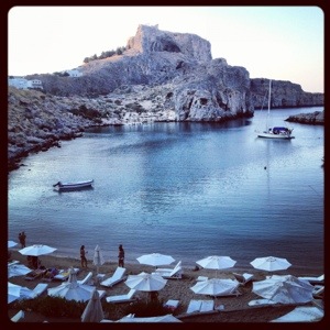Blir svårt farväl. Morgondoppet i Lindos, på Rhodos, Grekland var en helande upplevelse. Nu står jag på standby för hemfärd. Har köpt en massa grekiska söndagstidningar och är som vanligt lika sentimental och melankolisk när jag ska lämna det här landet. Nästa gång jag är här kan allt vara annorlunda.